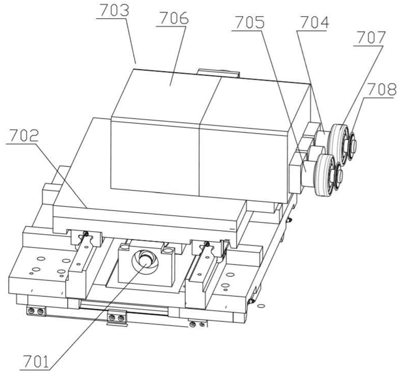 在一些實(shí)施方式中,第二移動(dòng)部包括第二電機(jī)、齒輪、齒條、第二線軌、第二滑塊和第二安裝板,第二電機(jī)的的輸出端連接齒輪,齒條固定在床身上,齒輪與齒條嚙合,第二線軌與齒條平行設(shè)置,第二滑塊套設(shè)在第二線軌上,第二電機(jī)與第二滑塊固定安裝在第一安裝板上,第二電機(jī)驅(qū)動(dòng)第二安裝板在第二線軌上作直線往復(fù)運(yùn)動(dòng)。