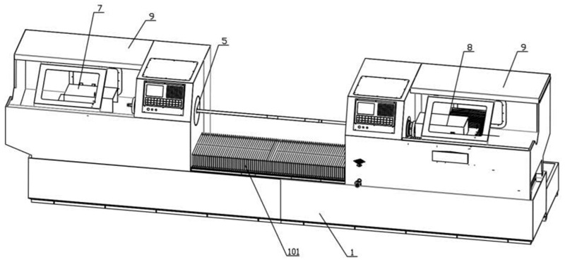 圖1是本實(shí)用新型碳化硅管體雙頭打磨車(chē)床的結(jié)構(gòu)示意圖;