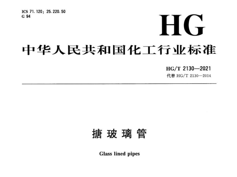 中華人民共和國化工行業(yè)標(biāo)準(zhǔn)HG/T 2130-2021搪玻璃管 點擊下載搪玻璃管行業(yè)標(biāo)準(zhǔn)