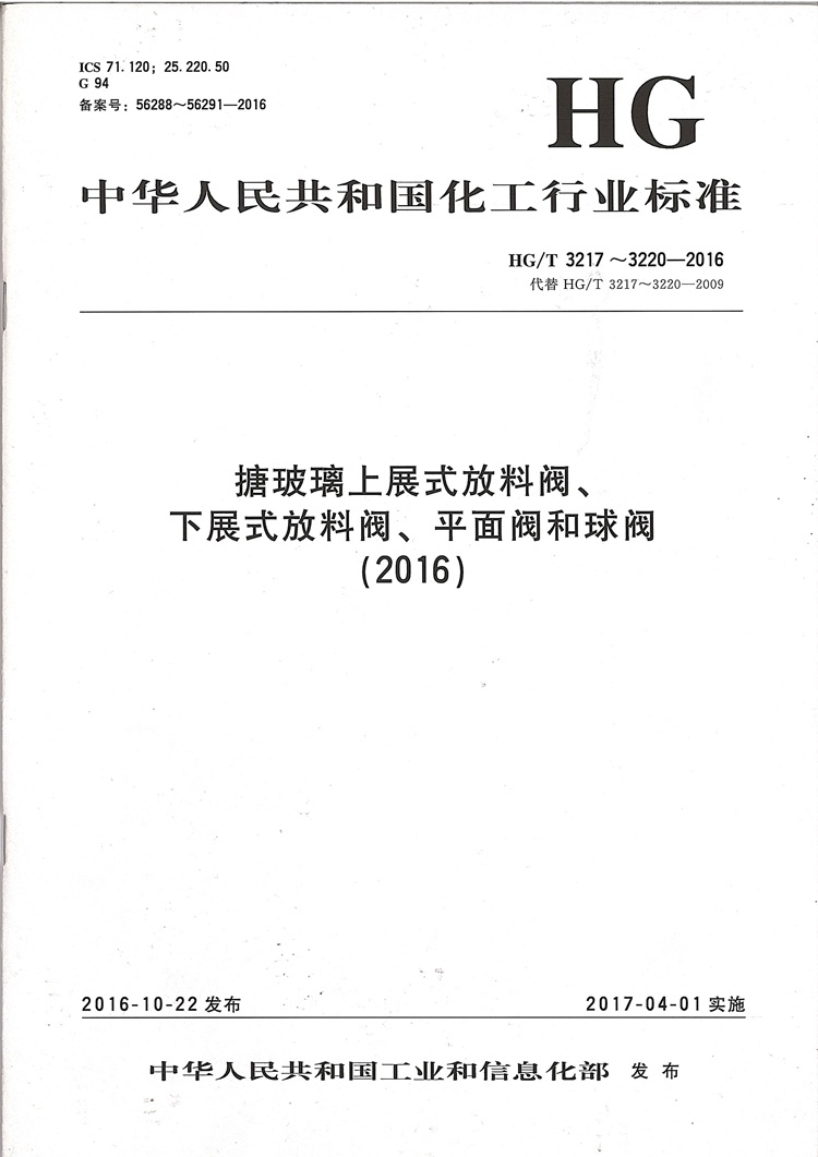 HG/T3217~3220-2016搪玻璃閥門標(biāo)準(zhǔn)