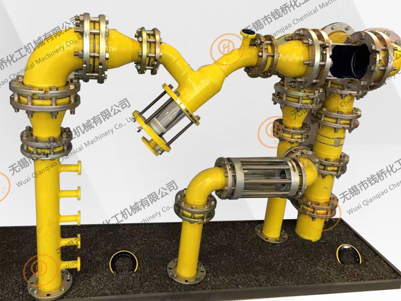The glass-lined pipe assembly can be divided into two categories: the first type consists of steel-lined glass pipes, which form the main body of the glass-lined pipe assembly, such as glass-lined tubes and elbows (including 30°, 45°, 60°,90°,180°elbow), three- way (including equal-diameter tee and reducer tee), four-way (including equal-diameter four-way and reducer four-way), reducer (including concentric Diameter pipe, eccentric reducer, reducer flange, spacer and flange cover; the second type is the connection and sealing components of non-glass glass, such as glass-lined equipment, loose flange, glass-lined Equipment gaskets, fasteners (including bolts, nuts, washers), etc., the function is to complete the combination and assembly between the glass-lined pipe fittings or the glass-lined pipe fittings in other pipes (equipment), so that they can be connected to realize the pipeline Features.